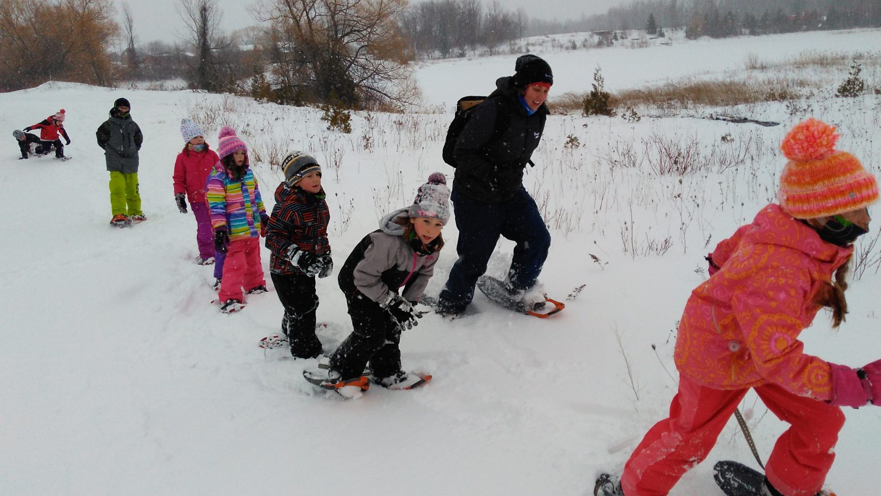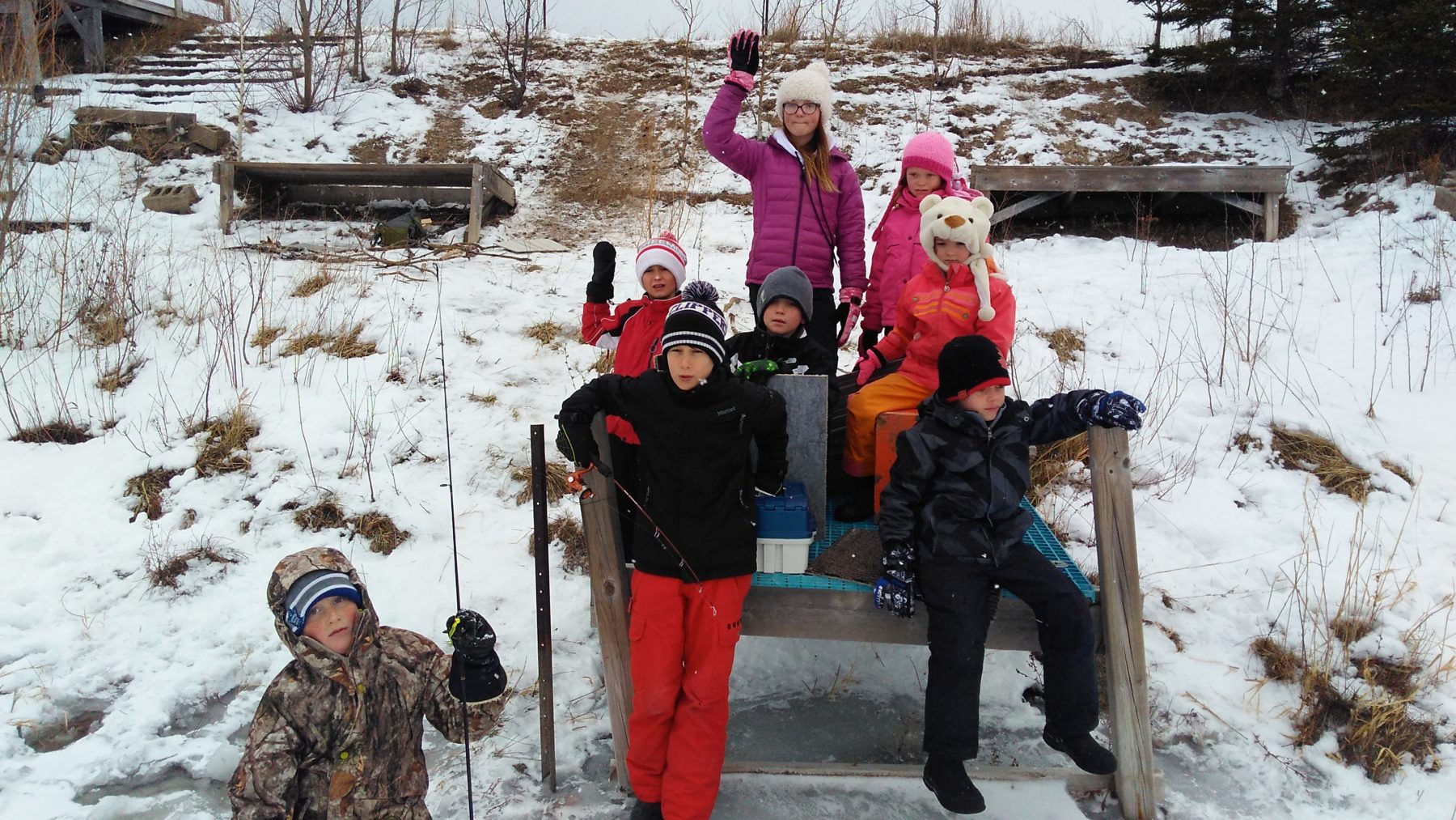 And then we were off! We grabbed our auger, went over important ice safety rules and partnered up. On the ice, students had a chance to drill out their own holes, set up their lines and practice a LOT of patience. With games going on on the side and fire built to keep us warm (and warm cider!), the students kept a constant eye on their lines. There was so much excitement, students on Wednesday even decided to forego free play in order to continue fishing. Although we did get a few nibbles, and fish could be seen below the ice, unfortunately no catches. Next time though!